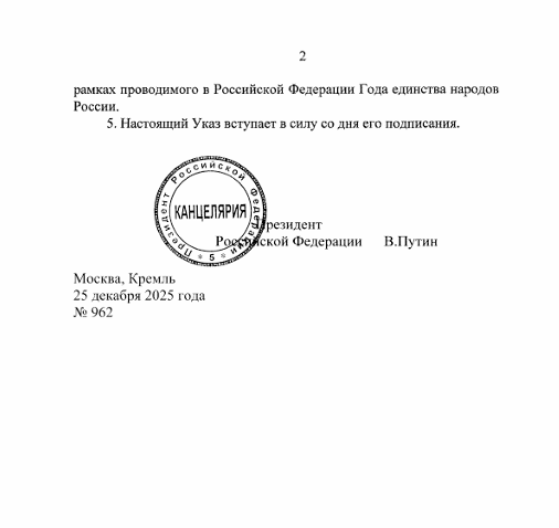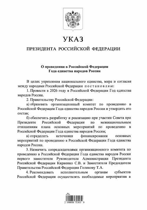 По решению Владимира Путина 2026 год объявлен годом единства народов России.